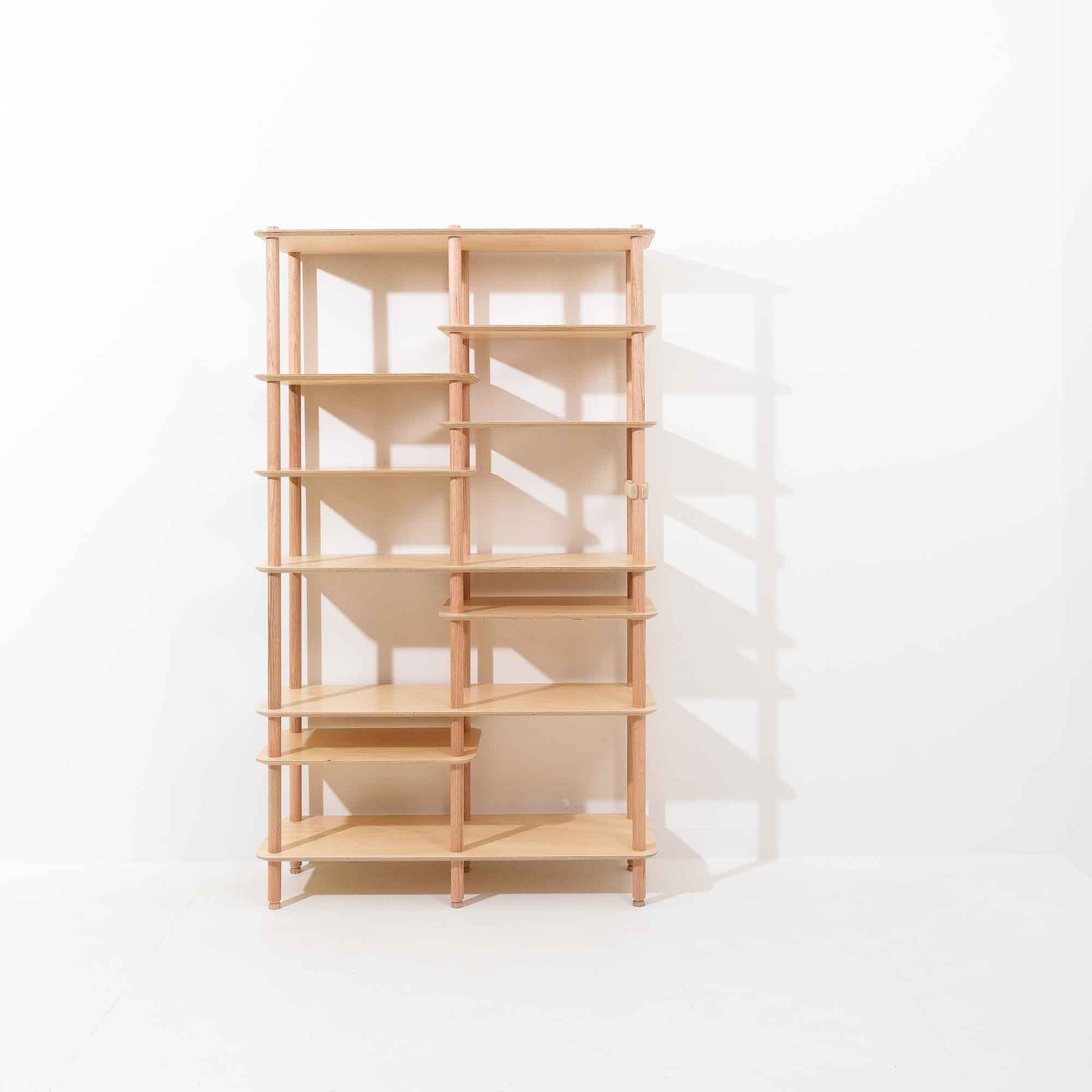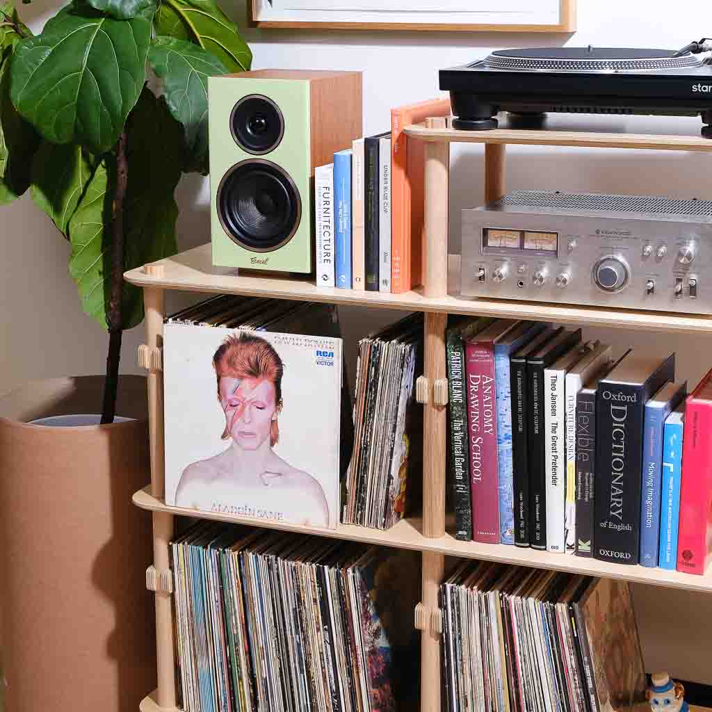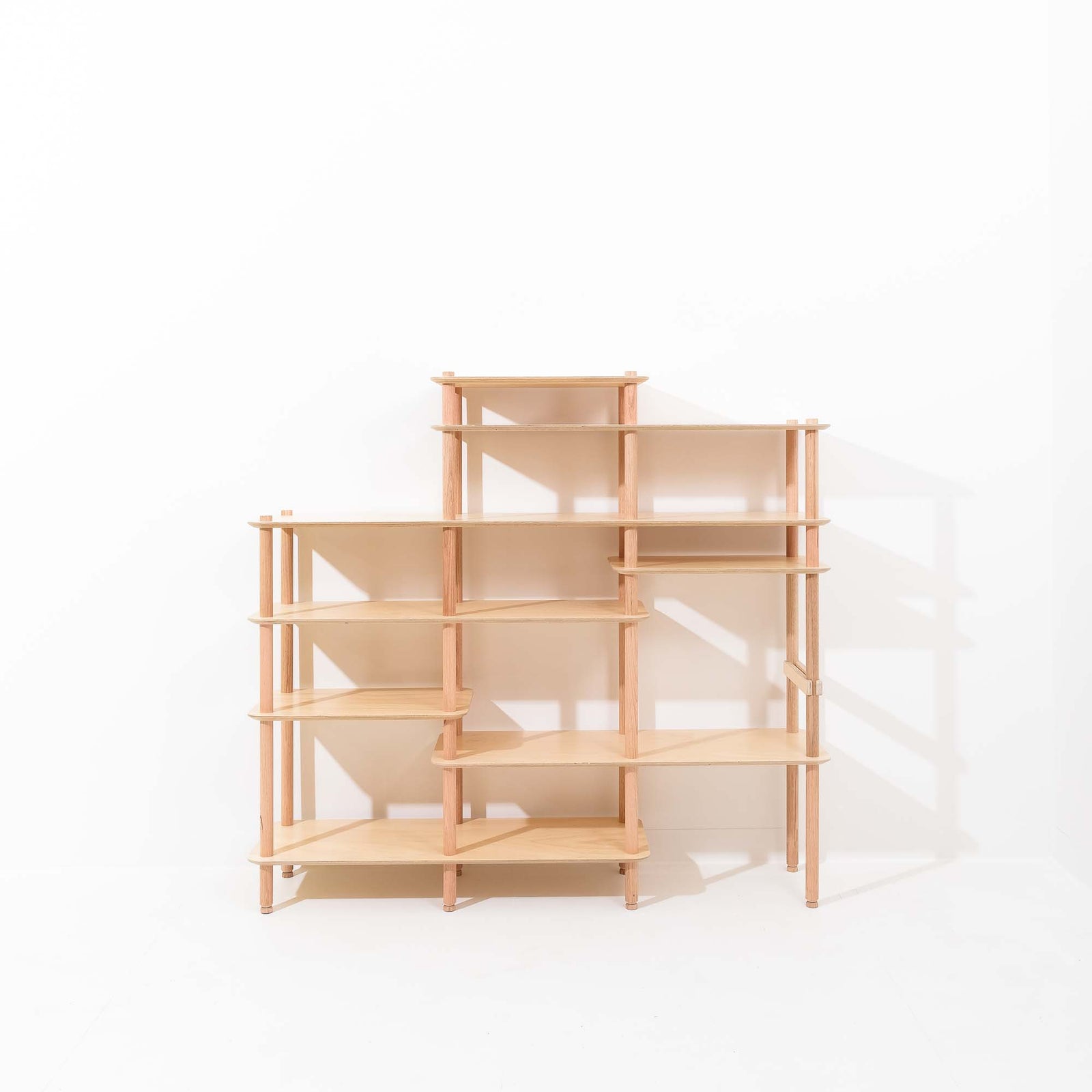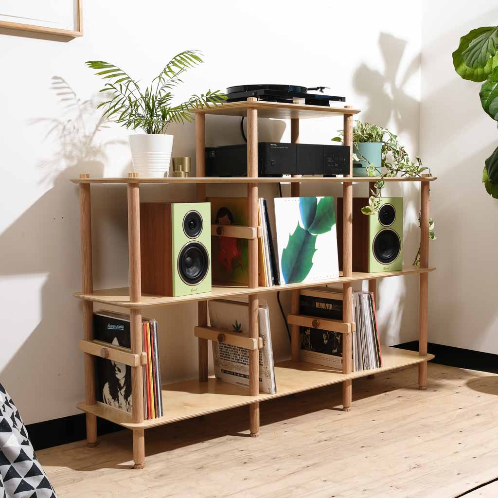 KittaParts is a truly modular shelving system. The threaded timber system is completely reconfigurable.