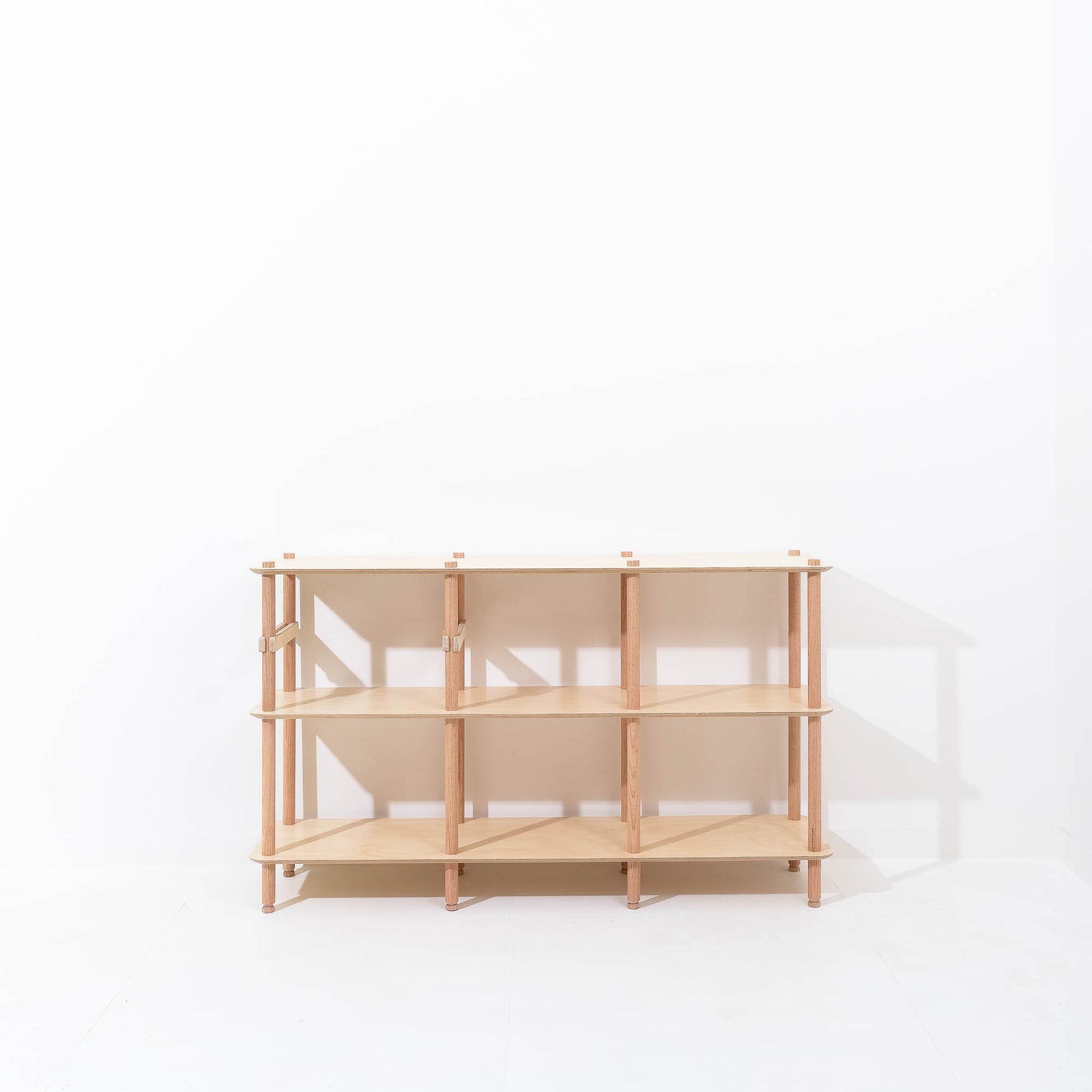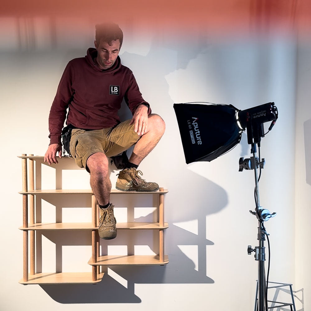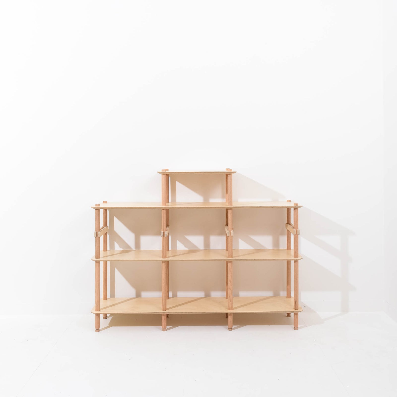 KittaParts is a truly modular shelving system. The threaded timber system is completely reconfigurable.